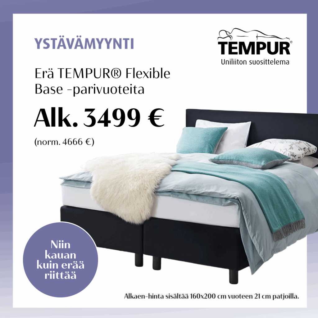 Paremmat unet ja laadukas palautuminen alkaa yksilöllisesti sopivasta sängystä ja optimoidusta nukkumisympäristössä. Me autamme sinua kohti elämäsi parhaita unia. Piipahda myymälässämme YSTÄVÄMYYNTI-viikolla niin katsotaan sinulle sopiva ratkaisu unen haasteiden ratkaisemiseksi.