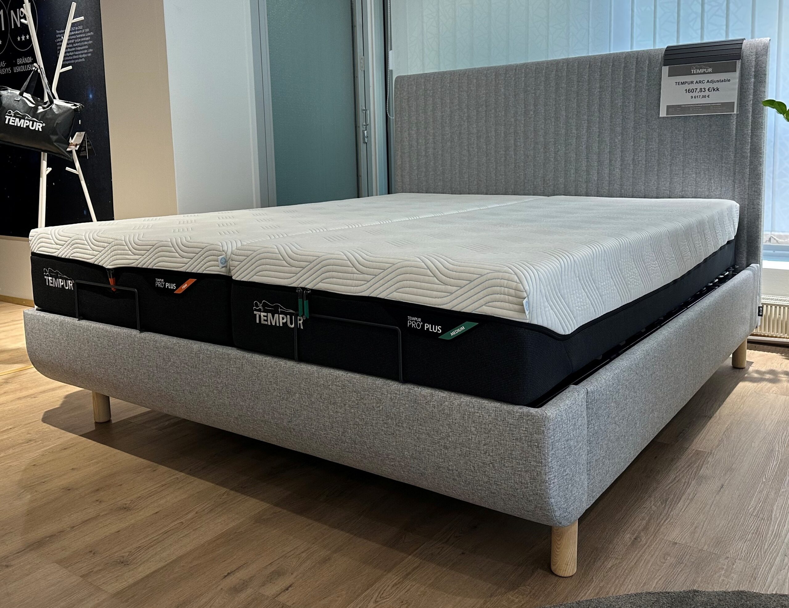 Tempur Brand Store Kuopion outletissa myynnissä nyt ARC adjustablen- säätövuode koko 180×200. Tempurin Arc-sänky on ainutlaatuinen sänkykokonaisuus, joka on suunniteltu tukemaan Tempur-patjan ominaisuuksia ja parantamaan nukkumisergonomiaa. Palkitun suunnittelutoimisto Studio Stockholmin kanssa luotu Tempur Arc on kauniisti muotoiltu sänkymallisto. Mallisto on suunniteltu sopimaan erilaisiin sisustustyyleihin – klassisesta nykyaikaiseen.